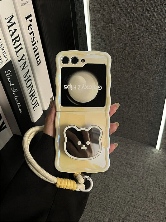 Korean Cute Yellow Case with Bear Mirror & Rope for Samsung Galaxy Z Flip 5/6